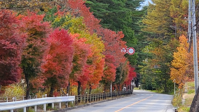 標高が上がるにつれて見頃の紅葉がお出迎え(^^)