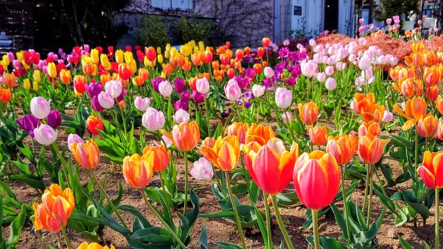 色とりどりのチューリップも