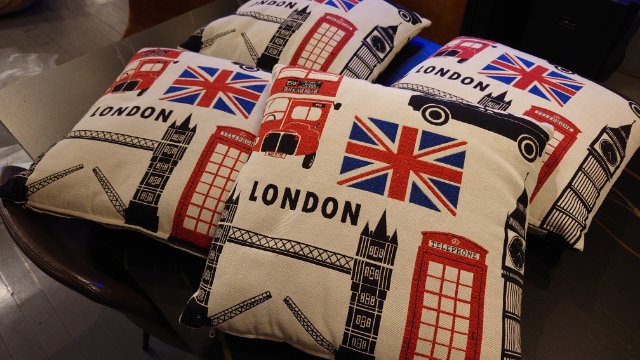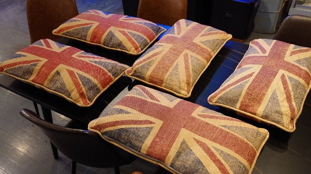 ユニオンジャックデザインのクッションで