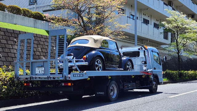 前日に空冷ビートルを積み込み